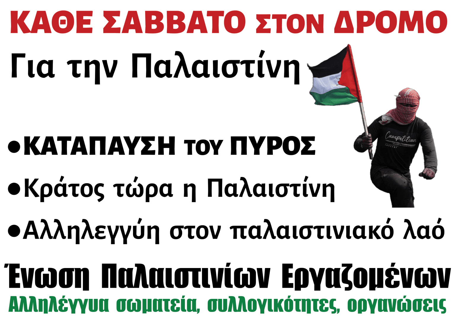 Αυτή την κρίσιμη ώρα, ΟΛΟΙ ΣΤΟ ΠΛΕΥΡΟ ΤΟΥ ΗΡΩΪΚΟΥ ΠΑΛΑΙΣΤΙΝΙΑΚΟΥ ΛΑΟΥ. Με διαδηλώσεις, συγκεντρώσεις, καταλήψεις, με κάθε μορφή πάλης και με όλες μας τις δυνάμεις να απαιτήσουμε: