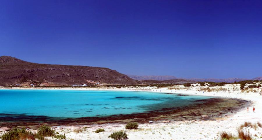 Elafonissos is a small island located off Cape Malea of the Peloponnese. The main attraction for nature lovers and tourists in the summer are the white sand beaches of Simos and Sarakinikos (the only two on the island) which stretch around a bend in the coastline and are connected by a thin strip of sand to a tiny, sandy almost-island, forming between them natural turquoise lagoons. The beaches form part of a wider ecosystem of extensive sand dunes which are increasingly rare in the Mediterranean. Once a well-kept secret, they have recently been featured in publications including the Guardian newspaper.