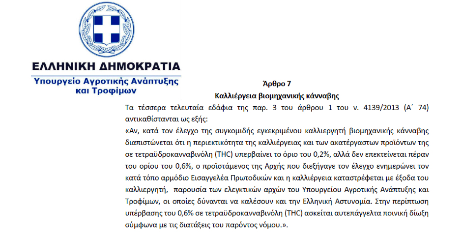 Συγκεκριμένα, αναστάτωση έχει προκαλέσει η διάταξη που ορίζει ακόμη και να καίνε τη σοδειά τους με δικά τους έξοδα εάν αυτή κινηθεί μεταξύ του 0,2 και του 0,6% περιεκτικότητας σε τετραϋδροκανναβινόλη – THC.