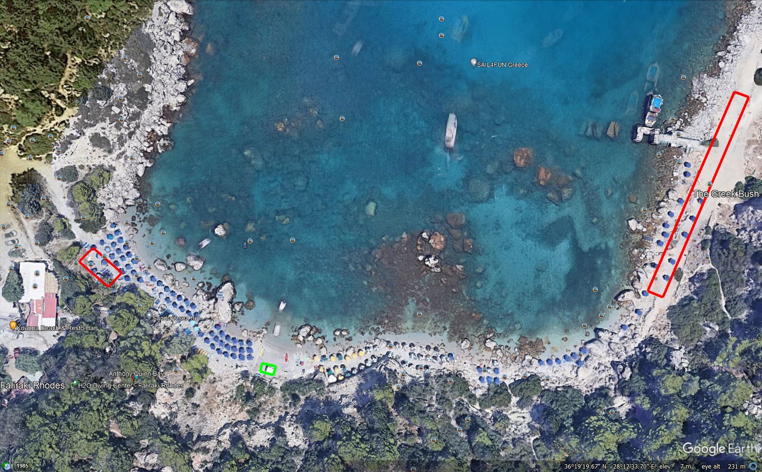 «Ειδικά στην παραλία Άντονι Κουίν, η αυθαίρετη κατάληψη του χώρου ήταν εξοργιστική. Ενώ η μίσθωση ήταν για 82 τμ, έγινε κατάληψη έκτασης 1200 τμ !! Ενώ δηλαδή νόμιμα θα έπρεπε να υπάρχουν 24 ξαπλώστρες, είχαν τοποθετηθεί 190. Σε κάποια σημεία της παραλίας βρίσκονταν ακόμη και μέσα στη θάλασσα» προσθέτει η «Ομπρέλα» και συνεχίζει λέγοντας: