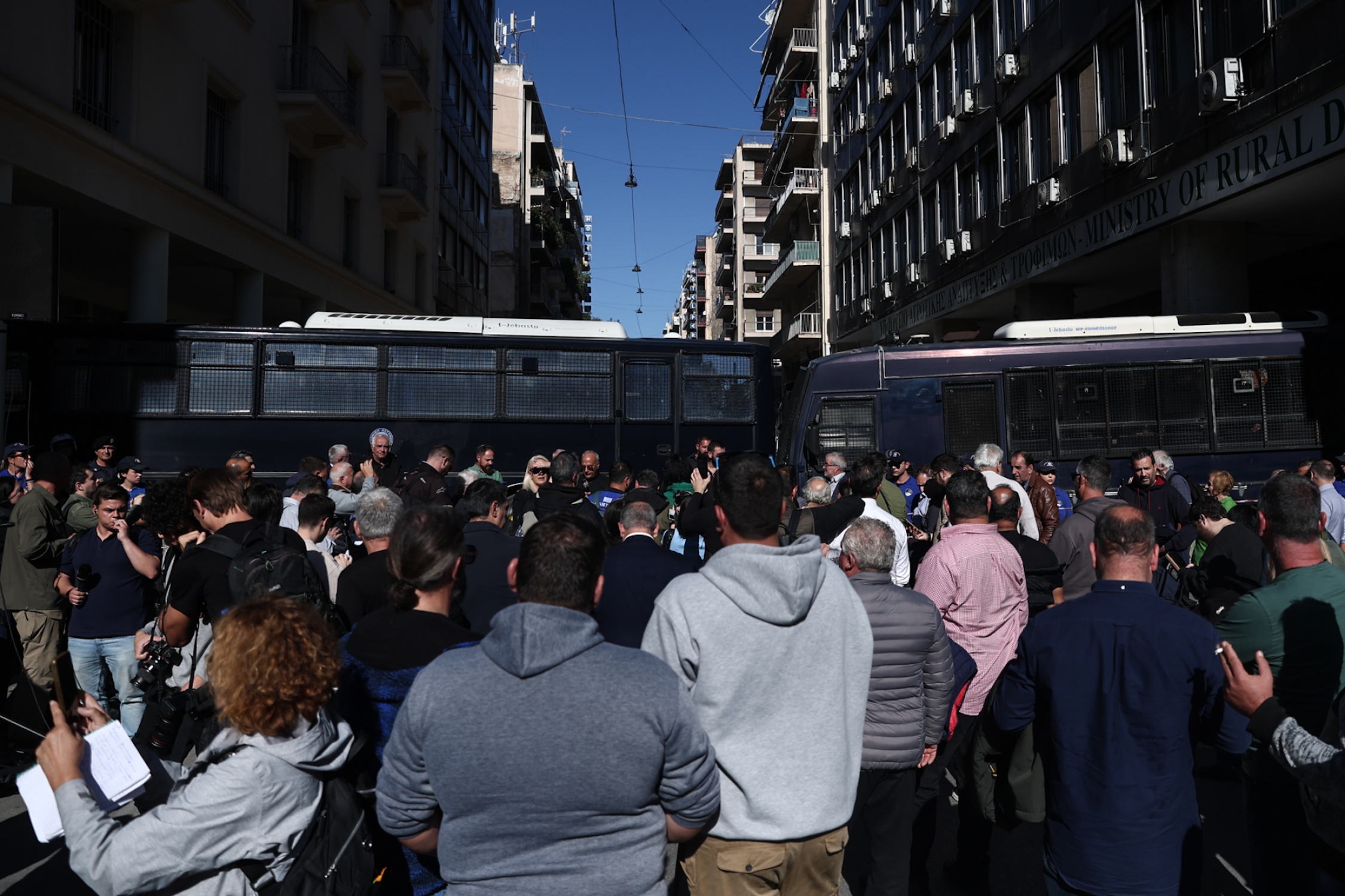 A delegation of farmers delivered a resolution outlining their demands to Minister Kostas Tsiaras and later to Deputy Prime Minister Kostis Hatzidakis. Protesters denounced the conditions of financial suffocation they face, citing delayed subsidy payments, inadequate compensation for natural disasters and the devastating impact of sheep and goat pox on livestock.