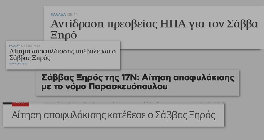 Ένα νέο όργιο τρομολαγνικών και φοβικών σεναρίων στήνεται από μεγάλη μερίδα του πολιτικού συστήματος με τη γνωστή ανθρωποφαγική συνδρομή μερίδας ΜΜΕ, δημοσιογράφων, πρωτοσέλιδων και διαδικτύου, με αφορμή αυτή την τελευταία αίτηση του Σάββα Ξηρού για υφ’ όρον απόλυσή του.