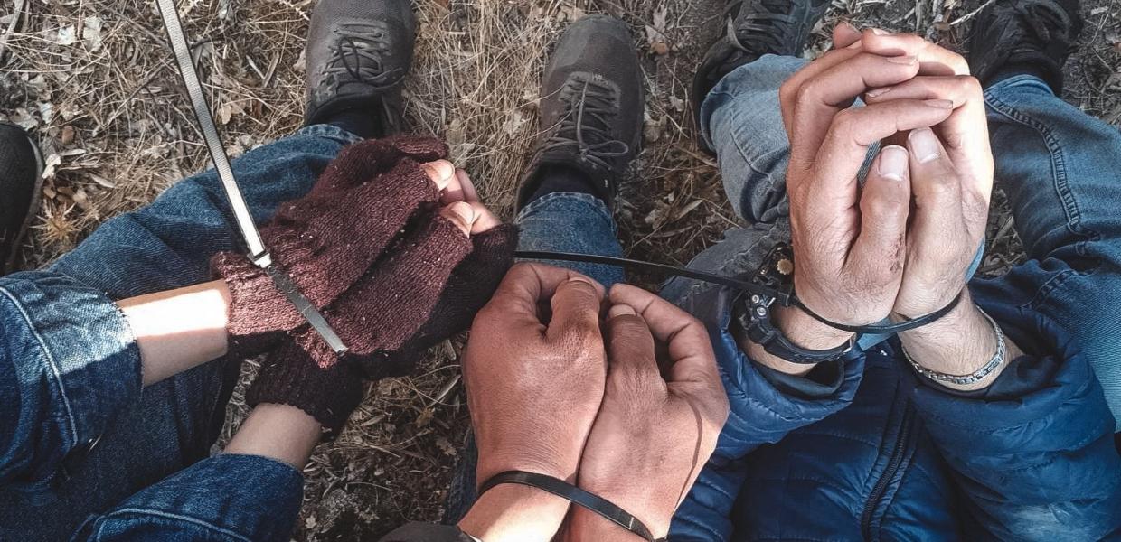Φτάνοντας στην ιδιαίτερη δύσβατη τοποθεσία που τους υπέδειξε η Ύπατη Αρμοστεία, άκουσαν ουρλιαχτά και κλάματα. Πλησίασαν και αντίκρισαν 22 πρόσφυγες -εκ των οποίων οι 6 ήταν παιδιά κάτω των 10 ετών. Στους τρεις είχαν προλάβει να περάσουν ήδη πλαστικές χειροπέδες, ενώ οι τέσσερις εξ αυτών ήταν εμφανώς χτυπημένοι, αφού αιμορραγούσαν και είχαν σημάδια στα σώματά τους. «Οι πρόσφυγες μας είπαν ότι 8 γεροδεμένοι, νέοι άνδρες με κουκούλες – μπαλακλάβες τους προσέγγισαν με την πρόφαση ότι είναι γιατροί. Φυσικά δεν τους εμπιστεύθηκαν. Εκείνοι ισχυρίζονταν ότι έχουν και φαγητό μαζί τους και ότι θα τους βοηθήσουν. Μόλις τους πλησίασαν αρκετά άρχισαν να τους χτυπούν δυνατά και τους έδεσαν. Εμείς, την ώρα του ξυλοδαρμού τους ήμασταν πολύ κοντά. Ακούγαμε τα κλάματά τους και τις φωνές τους. Όταν τους αντικρίσαμε έκλαιγαν όλοι. Γυναίκες, άνδρες και παιδιά. Μας είπαν ότι μόλις τράπηκαν σε φυγή οι 8 επειδή μας άκουσαν και μας έδειχναν την κατεύθυνση στην οποία διέφυγαν», περιγράφει.
