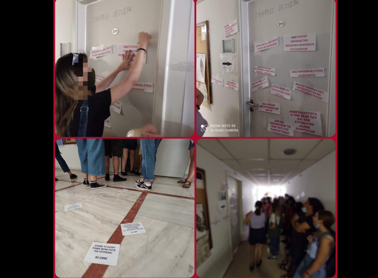Όπως καταγγέλλει η Μαρία Γεωργακοπούλου, απόφοιτη του τμήματος Μ.Μ.Ε, μιλώντας στο debater.gr,  «ο καθηγητής ζητούσε από φοιτήτριες να τις βγάλει φωτογραφία και κάποιες φορές με ακατάλληλο περιεχόμενο». Παράλληλα, σημείωσε ότι «οι καταγγελίες, απ΄όσο γνωρίζουμε ως φοιτητικός σύλλογος δεν αφορούν μόνο σεξουαλικές παρενοχλήσεις, αλλά αφορούν και αντιδεοντολογική συμπεριφορά τόσο απέναντι σε φοιτητές, περιπτώσεις bullying, όσο και απέναντι σε καθηγητές». Για τον εν λόγω διδάσκοντα από τον περασμένο Ιανουάριο υπήρξαν καταγγελίες και πραγματοποιήθηκε ΕΔΕ, ενώ όπως αναφέρει η φοιτήτρια «υπάρχουν καταγγελίες που έχουν γίνει πριν 10 χρόνια για τον συγκεκριμένο άνθρωπο. Τα τελευταία δυο χρόνια υπήρξαν οι έγγραφες καταγγελίες».