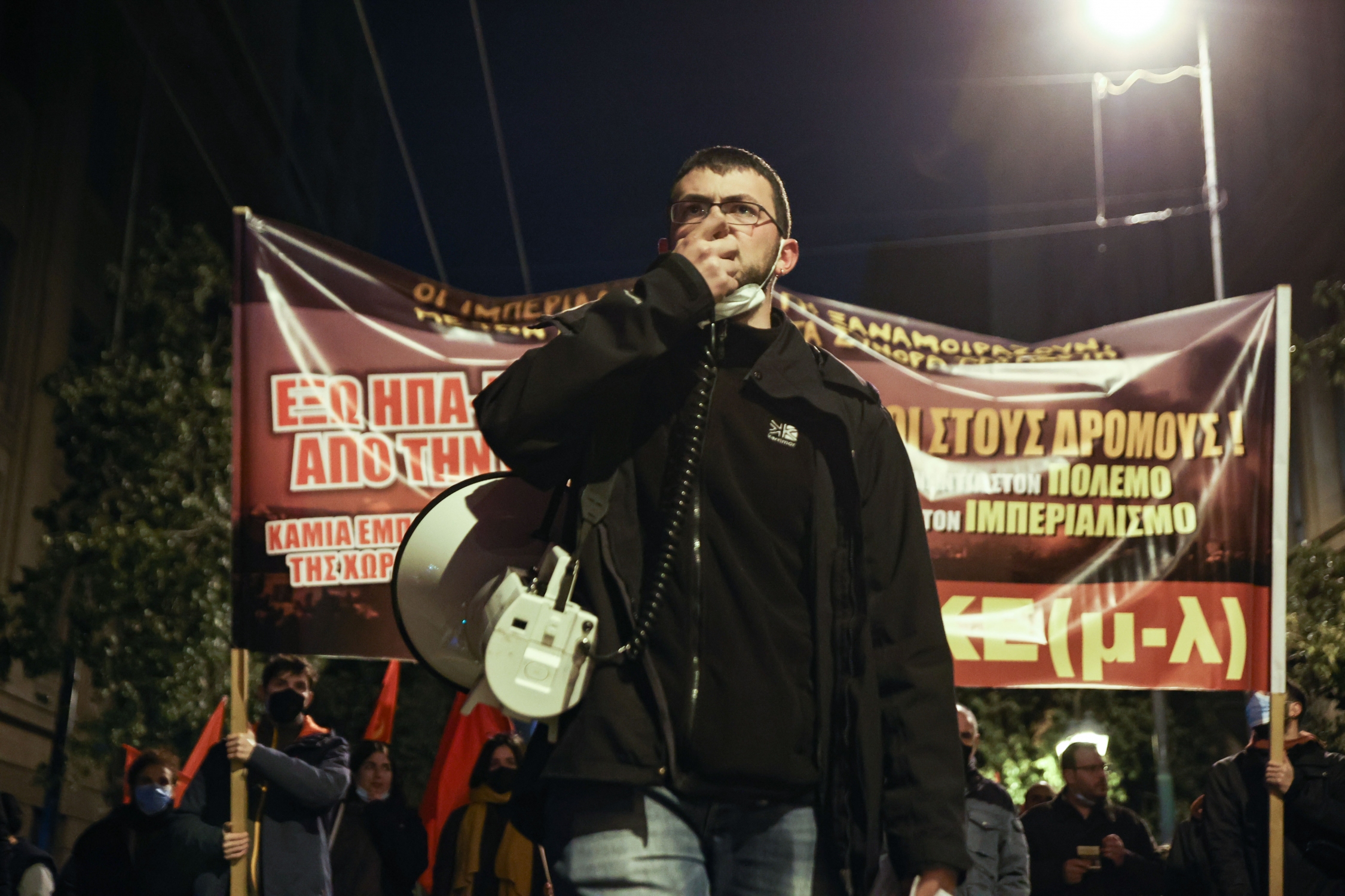 «Με την επέμβαση και τους βομβαρδισμούς στο Ιράν από ΗΠΑ-Ισραήλ, που πυκνώνουν τα σύννεφα του πολέμου, τόσο στην περιοχή μας όσο και γενικά… Με την ενεργό εμπλοκή της χώρας μας τόσο με την παραχώρηση των βάσεων και τη μετατροπή της σε ορμητήριο του αμερικάνικου ιμπεριαλισμού όσο και με την αποστολή φρεγατών και F-16 στην Κύπρο, δηλαδή όλο και πιο κοντά στο πολεμικό μέτωπο… Με τις προκλητικές δηλώσεις της κυβέρνησης για τις συμμαχίες της…