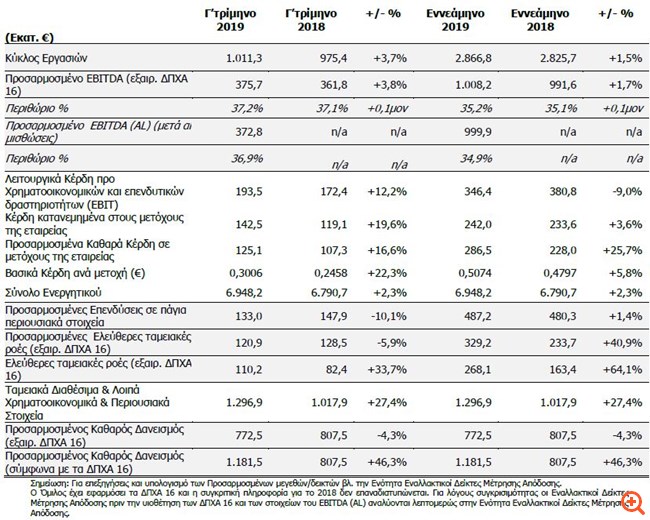 Η προκλητική πρόταση των Διοικούντων απέναντι στα συμφέροντα των εργαζομένων, έρχεται σε μια περιόδο που ο Όμιλος το 9μηνο του 2019 κατέγραψε: