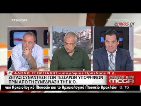 «Θα ήθελα να ζητήσω συγγνώμη από όλον τον κόσμο, ως υποψήφιος πρόεδρος της ΝΔ, για την εικόνα που έδωσε χθες η ΝΔ. Δεν είναι αυτά τα προβλήματα του κόσμου και δεν είναι αυτή η πραγματική ΝΔ που θέλουμε» είπε ο κ. Aδ. Γεωργιάδης, μιλώντας το πρωί στο MEGA.