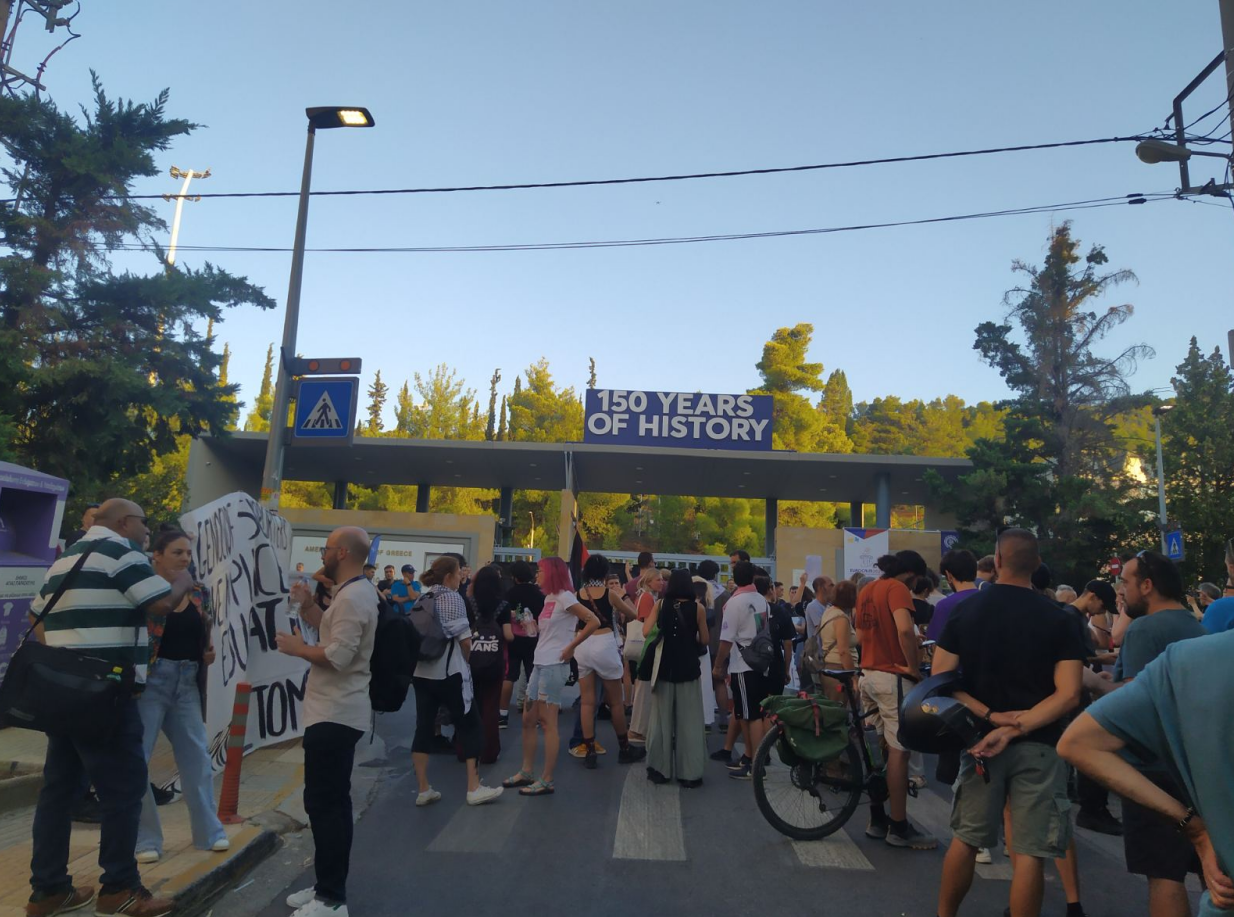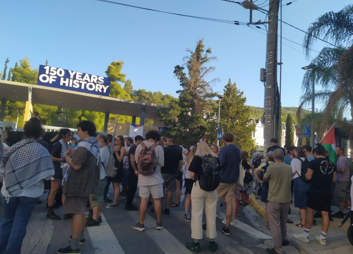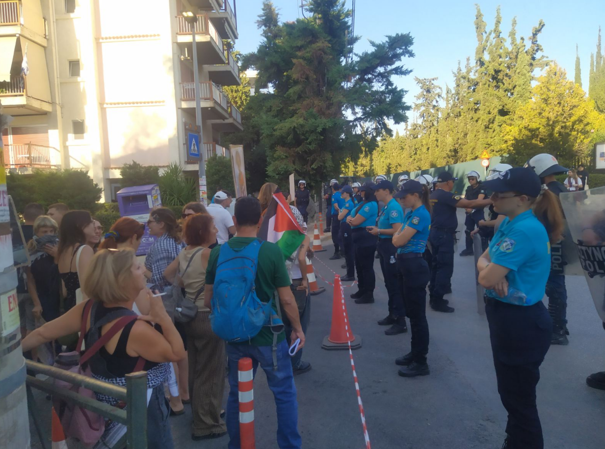 Την Τετάρτη ημέρα έναρξης των εργασιών του συνεδρίου το δημοτικό σχήμα της Αγίας Παρασκευής Φυσάει Κόντρα, το BDS Greece, οι Μητέρες Ενάντια στη Γενοκτονία και άλλοι φορείς και συλλογικότητες αλληλεγγύης στην Παλαιστίνη βρέθηκαν έξω από το Deree για να διαμαρτυρηθούν για το πολιτισμικό ξέπλυμα που επιχειρείται με την ισραηλινή συμμετοχή.