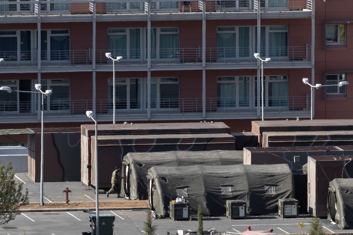 Σύμφωνα με το ρεπορτάζ του τηλεοπτικού σταθμού OPEN, το φορητό νοσοκομείο αποτελείται από αντίσκηνα, κοντέινερ, ενώ αναμένεται να αναπτυχθούν κλίνες με αναπνευστήρες. Η υλικοτεχνική υποδομή υπάρχει, ωστόσο δεν υπάρχει προσωπικό για τη στελέχωση της έκτακτης υγειονομικής δομής.