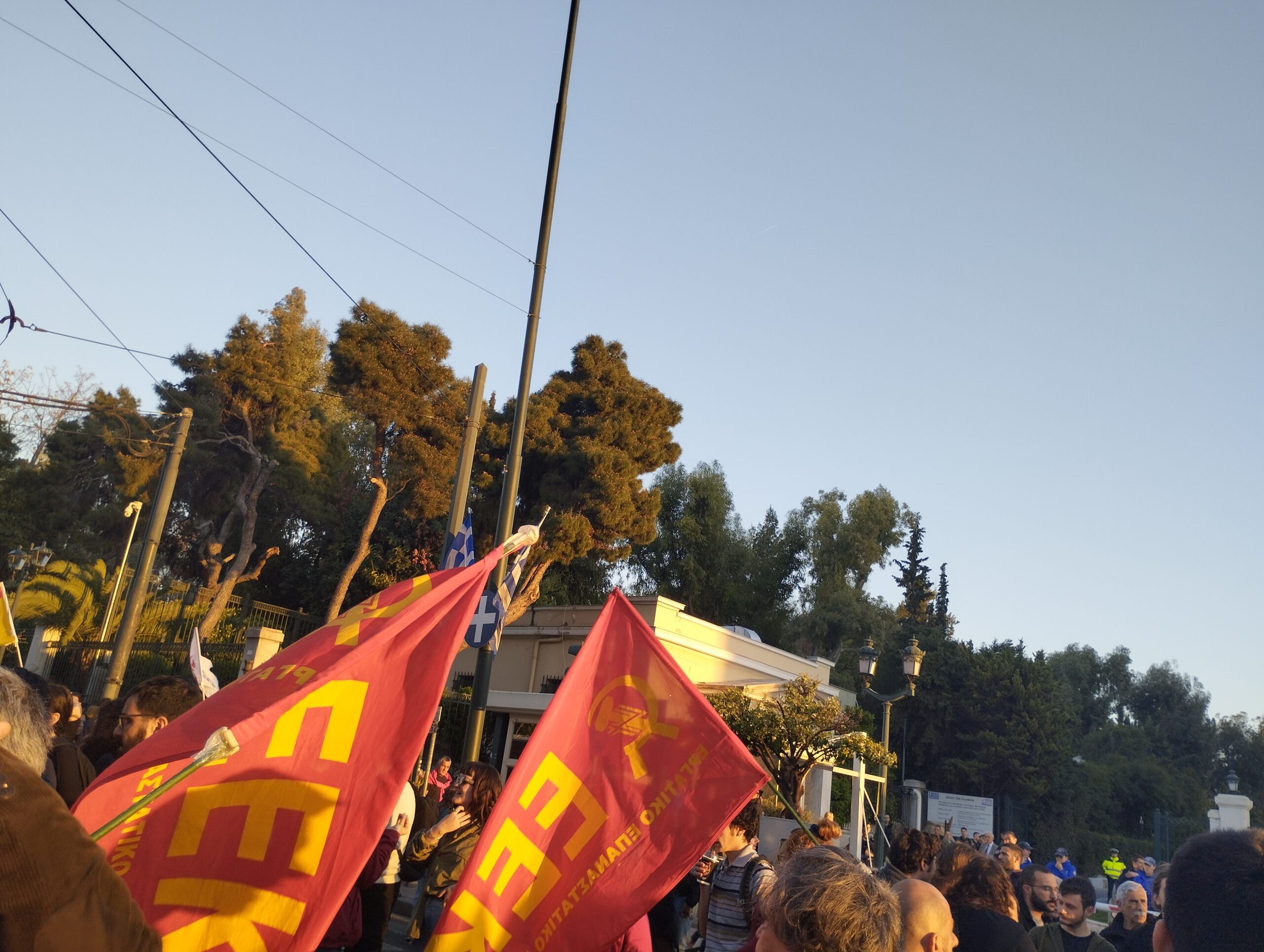 Ισχυρή είναι η παρουσία των αστυνομικών δυνάμεων, καθώς οι κλούβες της ΕΛ.ΑΣ. έχουν παραταχθεί μπροστά από τη γαλλική πρεσβεία.