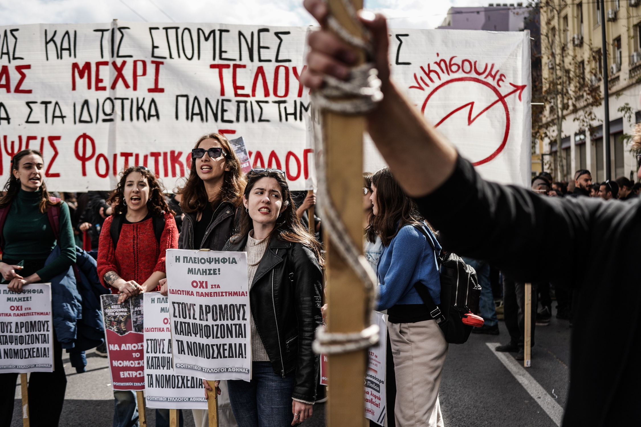 Πολλές χιλιάδες φοιτητές και εργαζόμενοι έδωσαν σήμερα στις 12.00 ραντεβού στα Προπύλαια, με κεντρικό σύνθημα « Η πλειοψηφία μίλησε. Όχι στα ιδιωτικά πανεπιστήμια. Πτυχία με αξία. Δωρεάν σπουδές» για να διαδηλώσουν ενάντια στο νομοσχέδιο της κυβέρνησης για τα ιδιωτικά πανεπιστήμα, κατά παράβαση του άρθρου 16 του Συντάγματος.