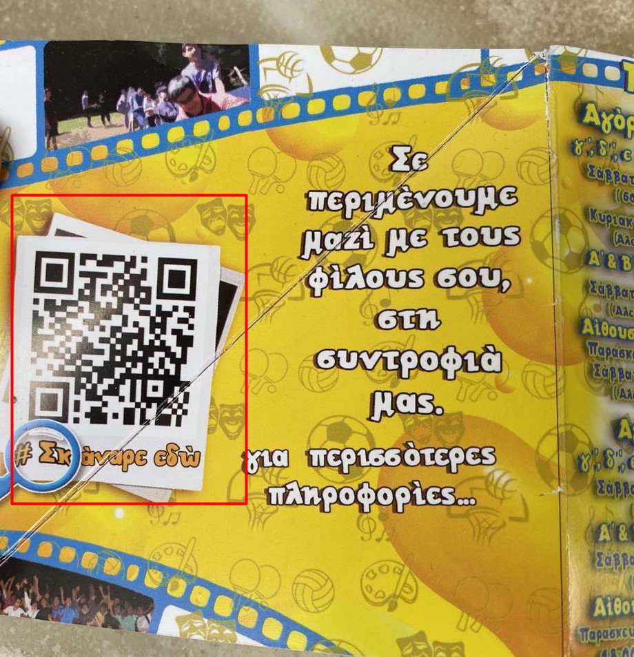 Αν κανείς σκανάρει το QR Code πάνω στο φυλλάδιο θα οδηγηθεί σε link με βίντεο που φέρει τον τίτλο: «Το κατηχητικό ξεκίνησε!»