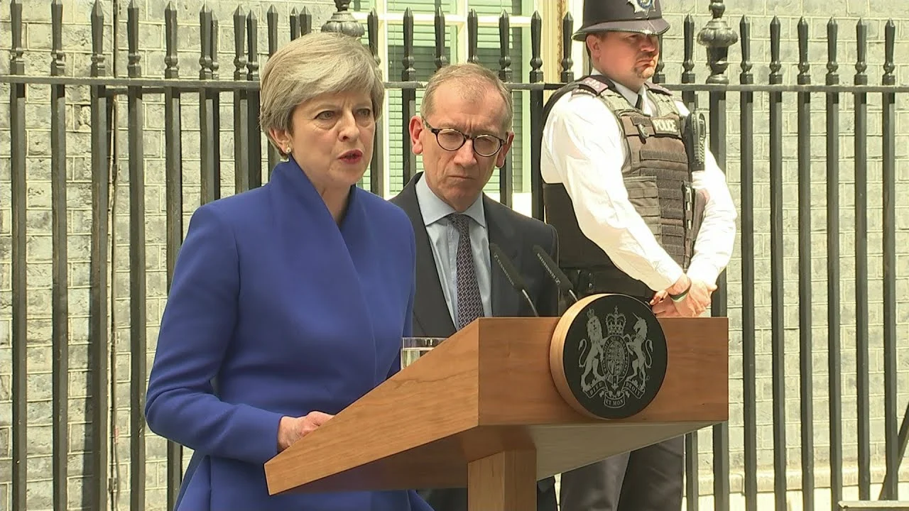 Έξω από την επίσημη πρωθυπουργική κατοικία της Ντάουνινγκ Στριτ, η Μέι δήλωσε πως μπορεί να βασιστεί στο κοινοβούλιο στην υποστήριξη των «φίλων» της του βορειοϊρλανδικού Δημοκρατικού Ενωτικού Κόμματος (DUP), αφού οι κυβερνώντες Συντηρητικοί απέτυχαν να κερδίσουν την πλειοψηφία.