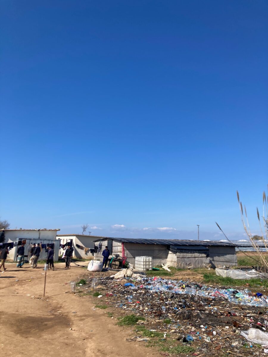 Οι συνθήκες διαβίωσης δεν παρουσιάζουν καμία βελτίωση. Στον καταυλισμό, τον οποίο επισκεπτόμαστε σταθερά, παραμένουν οι αυτοσχέδιες παράγκες από καλάμια, σίδερα και νάιλον θερμοκηπίου. Λόγω των χειμερινών καιρικών συνθηκών και των βροχοπτώσεων, οι εργάτες γης περνούν μέσα από τις λάσπες για να διασχίσουν τον καταυλισμό και να φτάσουν στα καταλύματά τους. Επίσης, εξαιτίας της έλλειψης ύδρευσης και ηλεκτρισμού, πλένονται με κρύο νερό, αφού επιστρέψουν από τα χωράφια παρά τις χαμηλές θερμοκρασίες.