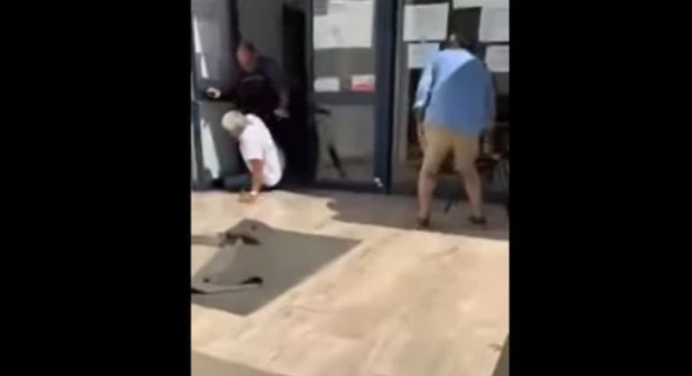 Το περιστατικό εκτυλίχθηκε στο κτίριο του ΔΕΔΔΗΕ Ηρακλείου το πρωί της Πέμπτης και καταγράφηκε από την κάμερα κινητού τηλεφώνου άλλου πολίτη που ήταν αυτόπτης μάρτυρας στη βιαιοπραγία.
