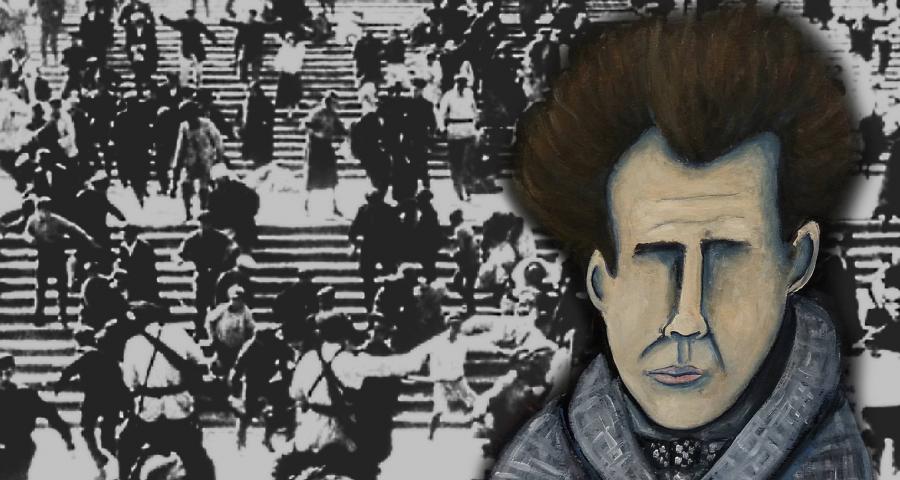 – Και βέβαια η σκηνή της σφαγής στα σκαλοπάτια της Οδησσού, με την αριστοτεχνική χορογραφία της αντίθετης κίνησης στρατιωτών – λαού.