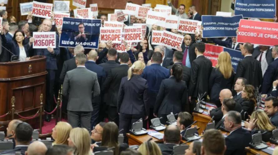 Εντύπωση προκάλεσε το γεγονός ότι καθ’ όλη την διάρκεια της πρώτης συνεδρίασης μπροστά από τα έδρανα της αντιπολίτευσης στέκονταν άνδρες της ασφάλειας. Οι βουλευτές της αντιπολίτευσης αρνήθηκαν να ορκιστούν εντός της αιθούσης και το έπραξαν λίγο αργότερα ενώπιον των δημοσιογράφων. Τα κόμματα της σερβικής αντιπολίτευσης καταγγέλλουν ότι στις εκλογές που πραγματοποιήθηκαν το περασμένο Δεκέμβριο έγιναν σοβαρές παρατυπίες που αλλοίωσαν το αποτέλεσμα.