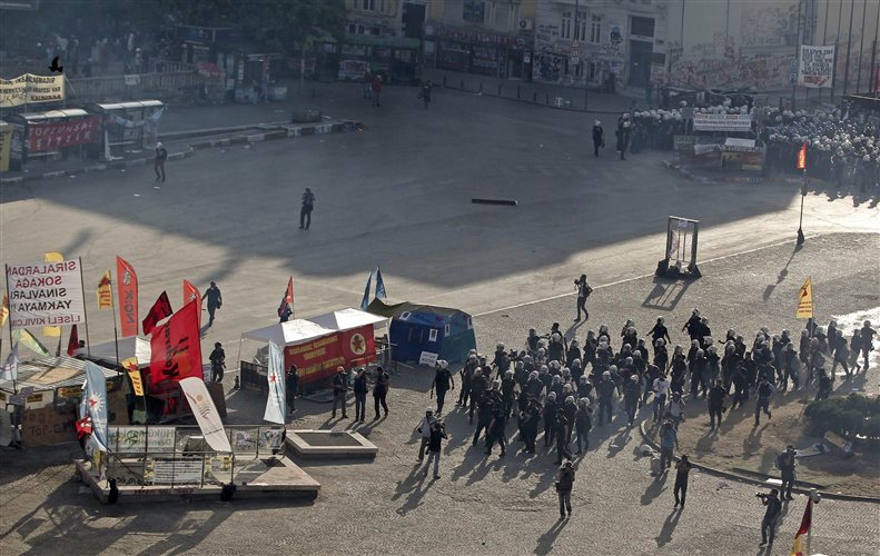 Εκατοντάδες μέλη των ειδικών δυνάμεων της αστυνομίας επενέβησαν την Τρίτη το πρωί στην πλατεία Ταξίμ, κέντρο των επεισοδίων ανάμεσα σε αστυνομικούς και διαδηλωτές τις τελευταίες ημέρες