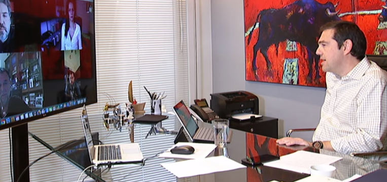 Κατά τη διάρκεια της τηλεδιάσκεψης, ο αρχηγός του ΣΥΡΙΖΑ εξέφρασε φόβο του ότι η έλλειψη προληπτικών μέτρων στήριξης οικονομίας, εργασίας και επιχειρήσεων, που καταλογίζει στην κυβέρνηση, θα οδηγήσουν σε «εξαιρετικά δυσμενή πραγματικότητα» μετά το τέλος της πανδημίας, την ώρα δηλαδή που θα επιχειρείται η επανεκκίνηση της οικονομίας. Εξέφρασε ακόμη την πεποίθηση του ότι «πρόκειται για συνειδητή πολιτική επιλογή» της κυβέρνησης, αφού, όπως είπε, υπάρχουν αυτή τη στιγμή δημοσιονομικά οι δυνατότητες για στήριξη της εργασίας και των επιχειρήσεων.