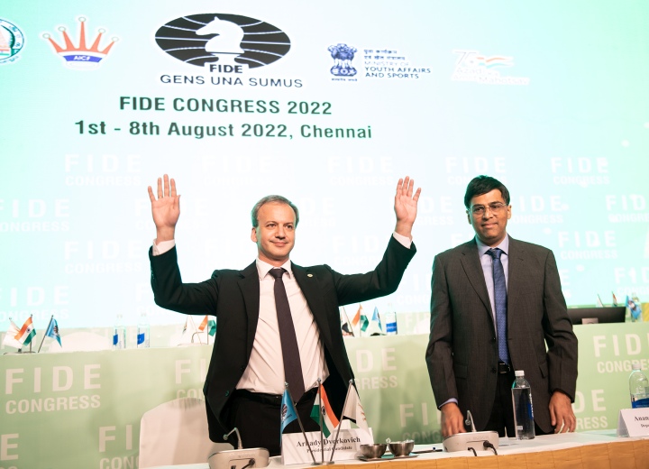 «Ναι, είμαι Ρώσος και υπηρέτησα τον λαό της χώρας μου, συμπεριλαμβανομένης της ρωσικής σκακιστικής κοινότητας, ως Πρόεδρος του Διοικητικού Συμβουλίου της Ρωσικής Σκακιστικής Ομοσπονδίας», είπε ο Ντβορκόβιτς κατά την ομιλία του πριν από την ψηφοφορία. «Προσπάθησα να το κάνω επαγγελματικά και με το υψηλότερο δυνατό επίπεδο ακεραιότητας. Και πήρα ξεκάθαρη θέση για τα τραγικά γεγονότα στην Ουκρανία, όπως και υποστήριξα τις αποφάσεις του Συμβουλίου της FIDE σχετικά με τη μείωση της συμμετοχής της Ρωσίας στη FIDE. Επιπλέον, εγκαταλείποντας τις ρωσικές χορηγίες, μπορέσαμε να βρούμε νέες σε όλο τον κόσμο, να διοργανώσουμε αυτή τη Σκακιστική Ολυμπιάδα [στην Ινδία] και να εξασφαλίσουμε οικονομική σταθερότητα για τη FIDE. Δεν είναι καθόλου εύκολο για μένα προσωπικά, αλλά ελπίζω ότι το σκάκι μπορεί να ενώσει ξανά τους ανθρώπους».