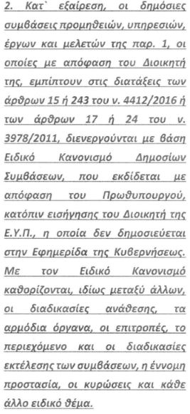 Από το συγκεκριμένο άρθρο «εξαιρούνται τα Τμήματα που αφορούν στην αξιολόγηση και πιστοποίηση διαβαθμισμένων συσκευών και αλγορίθμων και στην υποστήριξη των Ενόπλων Δυνάμεων και των υπηρεσιών του δημοσίου τομέα σε θέματα κρυπτασφάλειας, τις επικοινωνίες της ΕΥΠ με εξωτερικούς και εσωτερικούς φορείς, το προσωπικό και οι οργανικές θέσεις που αυτό κατέχει».