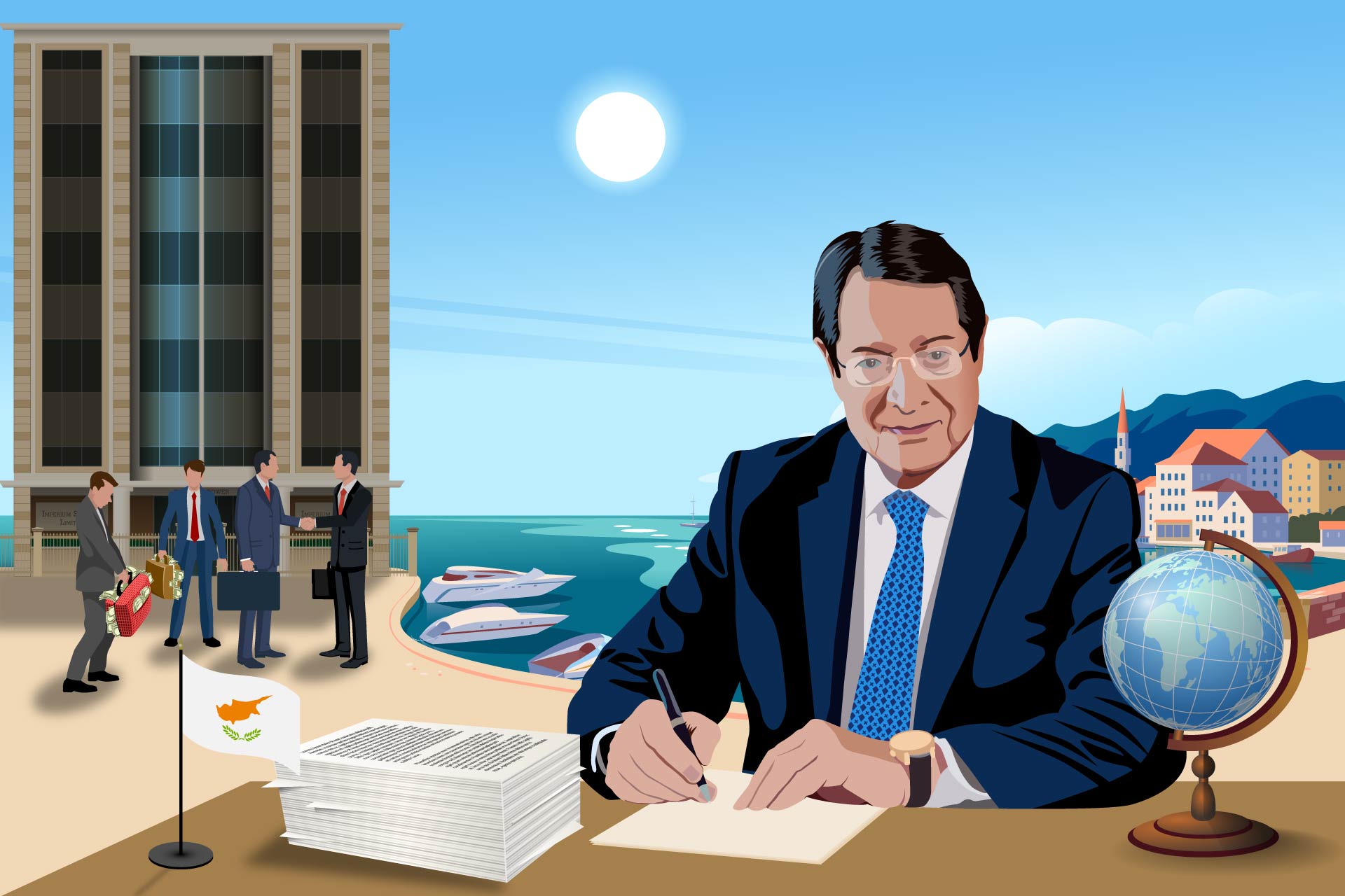 «Ως πρόεδρος της Δημοκρατίας της Κύπρου, ο Νίκος Αναστασιάδης έχει εργαστεί για να ενδυναμώσει την σχέση της χώρας του με τη Ρωσία την στιγμή που του ασκείται διεθνή κριτική για χαλαρούς οικονομικούς ελέγχους και ξέπλυμα χρήματος.