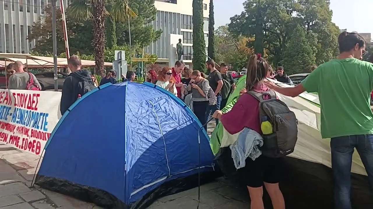 Οι φοιτητές και οι φοιτήτριες έστησαν σκηνές και πανό έξω από το κτήριο της Πρυτανείας και καταγγέλλουν ότι εξαιτίας της ακρίβειας, του κόστους των ενοικίων και γενικότερα του κόστους διαβίωσης δεν μπορούν να ανταπεξέλθουν με αποτέλεσμα κάποιοι να αναγκάζονται να εγκαταλείψουν τις σπουδές τους. Υπογραμμίζουν, επίσης, ότι οι φοιτητικές εστίες δεν μπορούν να καλύψουν τις ανάγκες των φοιτητών του ΑΠΘ.