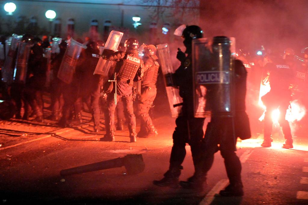 Οι διαδηλωτές επιτέθηκαν με πέτρες κατά του Δημαρχείου και οι αστυνομικές δυνάμεις «απάντησαν» με δακρυγόνα. Κι ενώ πολλοί διαδηλωτές επέλεξαν να αποχωρήσουν μετά το ξέσπασμα βίας, μέχρι αργά χθες το βράδυ σημειώνονταν συγκρούσεις σε διάφορα σημεία γύρω από την πόλη.