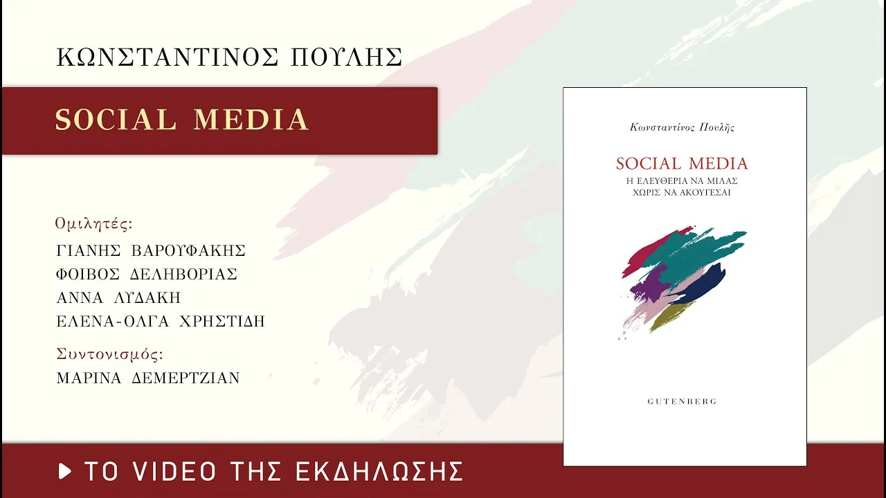 Δείτε το βίντεο από την παρουσίαση του βιβλίου του Κωνσταντίνου Πουλή «Social Media. Η ελευθερία να μιλάς χωρίς να ακούγεσαι» που πραγματοποιήθηκε στην ΕΣΗΕΑ την Τετάρτη 25 Φεβρουαρίου 2026.