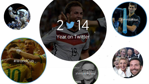 Το Twitter, από την άλλη, βρήκε ένα διαφορετικό τρόπο για να μιλήσει για αυτά που απασχόλησαν περισσότερο τους χρήστες του, δημιουργώντας ένα ξεχωριστό περιβάλλον, όπου βρίσκονται συγκεντρωμένα τα hashtags του 2014 που πρόκειται να μείνουν αξέχαστα σε ολόκληρο τον κόσμο (Mentions), αλλά και οι «καλύτερες στιγμές» εξαιρετικά δημοφιλών χρηστών της πλατφόρμας (Perspectives). Μεταξύ των προσωπικοτήτων που επιλέχθηκαν είναι η Lady Gaga, η συγγραφέας του Χάρι Πότερ, JK Rowling, o ποδοσφαιριστής της Barcelona, Neymar Jr, και οι ινδοί ηθοποιοί, Priyanka Chopra και Shah Rukh Khan.