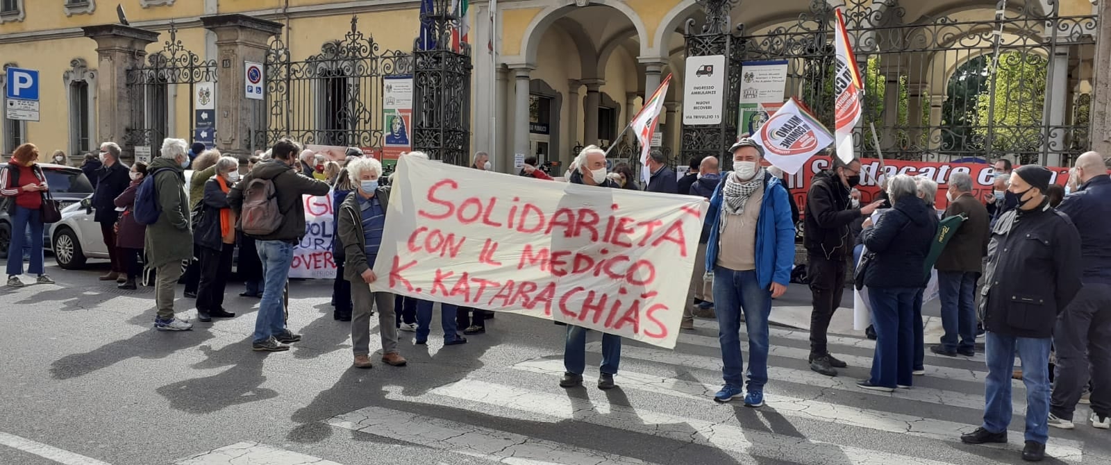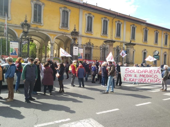 Το πανό της φωτογραφίας είναι από κινητοποίηση στο Μιλάνο στις 10 Απρίλη, στο πλαίσιο ημέρας δράσης για την Υγεία που οργάνωναν συνδικάτα, φορείς και συλλογικότητες έξω από νοσοκομεία και γηροκομεία σε όλη τη χώρα.