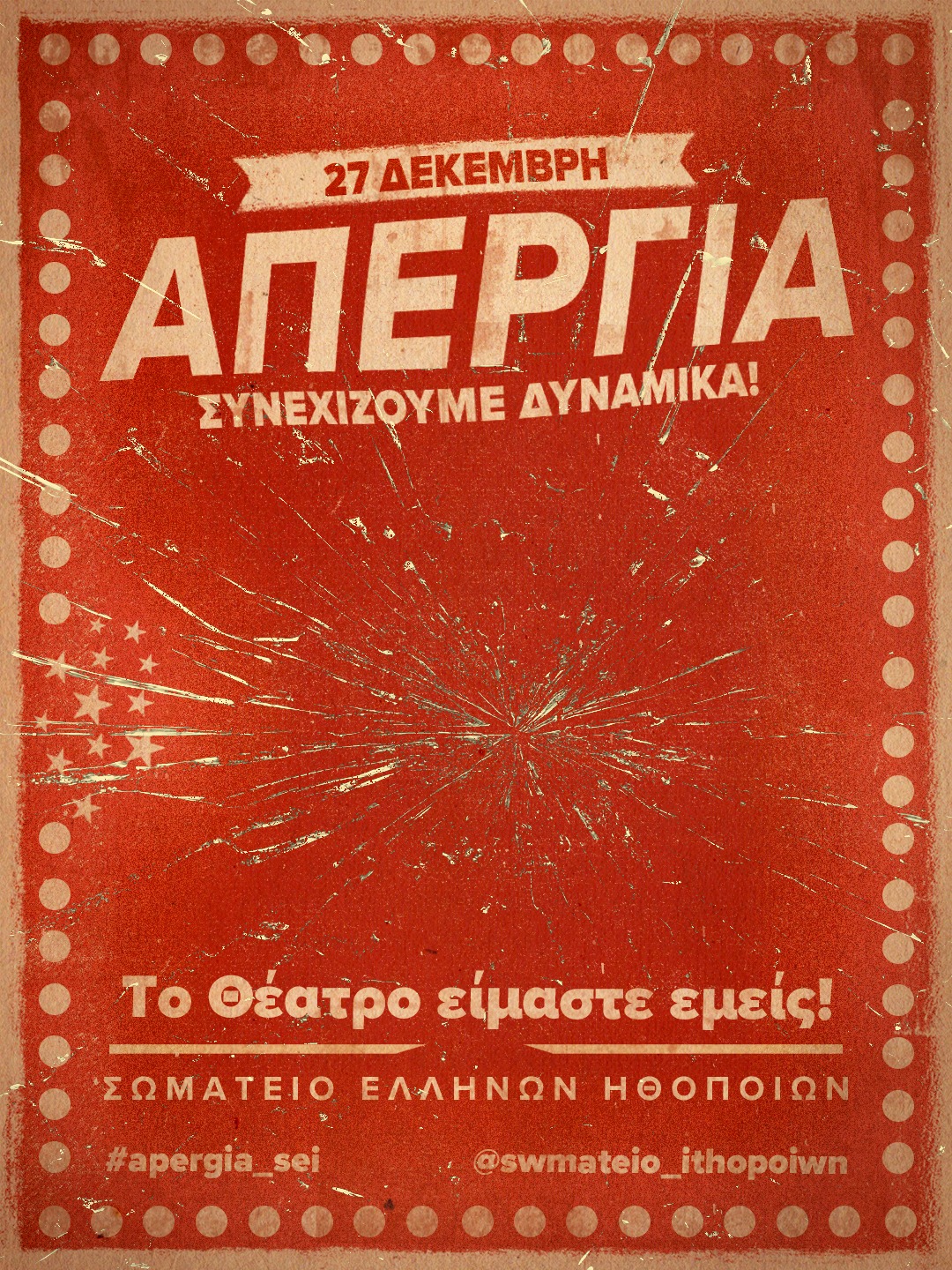 Η νίκη των ηθοποιών θα ανοίξει τον δρόμο για υπογραφή Συλλογικής Σύμβασης και για τους μουσικούς και τις υπόλοιπες ειδικότητες. Στην μάχη της απεργίας θα κριθεί εάν θα επιβληθεί το δίκιο μας επάνω στον φόβο ή το αντίστροφο.
