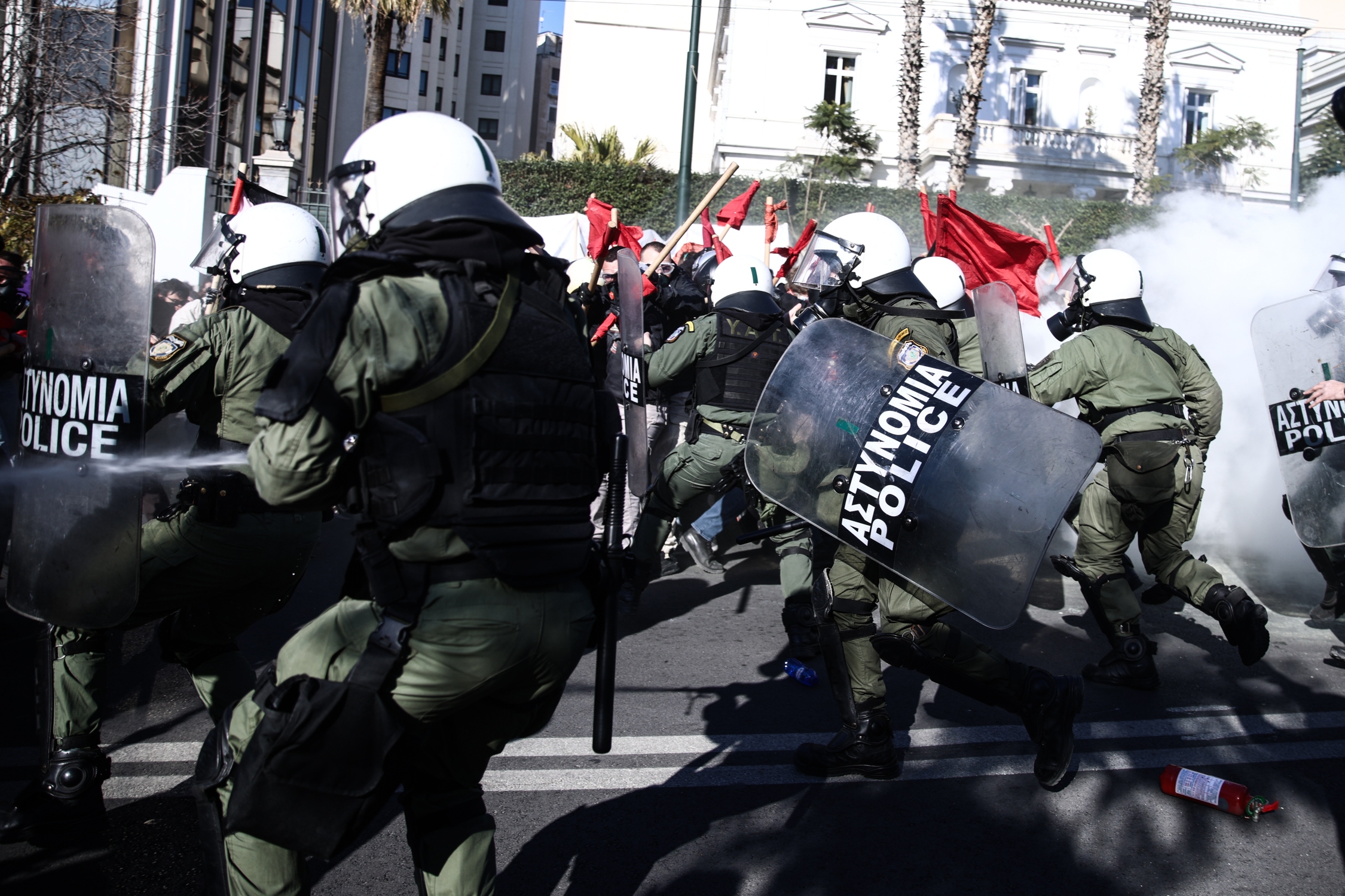 Τέσσερις φοιτητές κατέληξαν χθες στο νοσοκομείο τραυματισμένοι, μετά τη σύγκρουση διαδηλωτών και ΜΑΤ στο συλλαλητήριο ενάντια στα ιδιωτικά πανεπιστήμια.