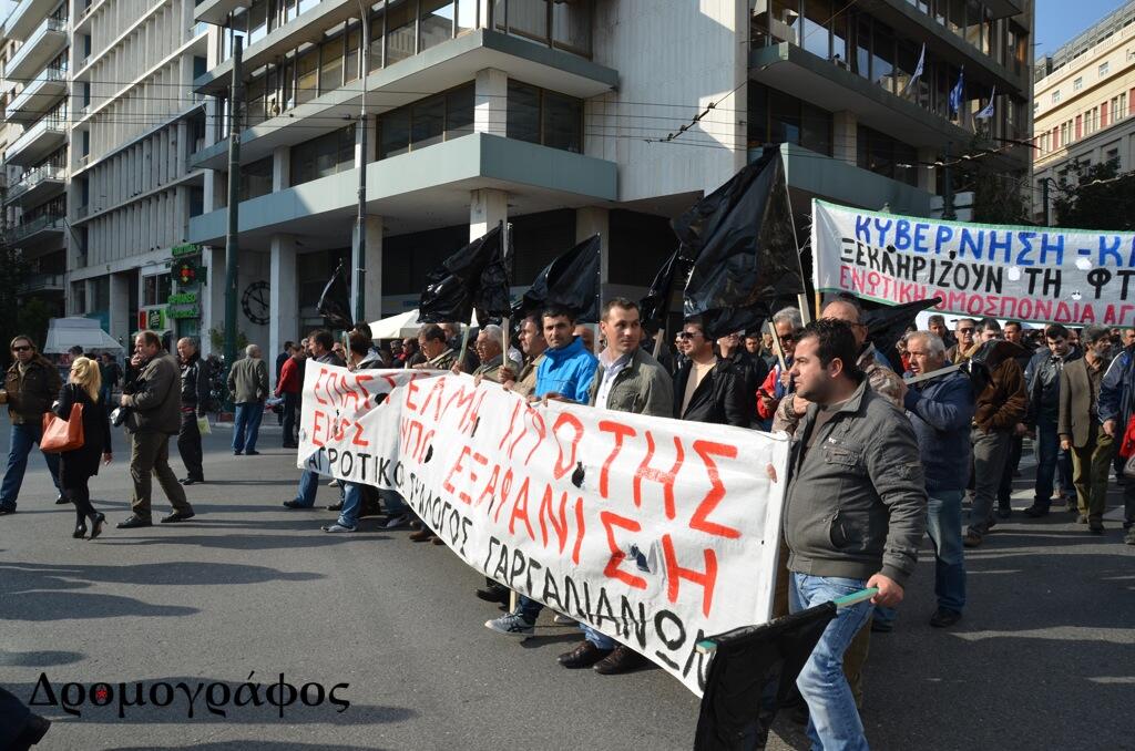 Συγκέντρωση διαμαρτυρίας έξω από τη Βουλή πραγματοποίησαν πάνω από 5.000 αγρότες που συμμετείχαν στο πανελλαδικό συλλαλητήριο που διοργανώθηκε για σήμερα Τρίτη