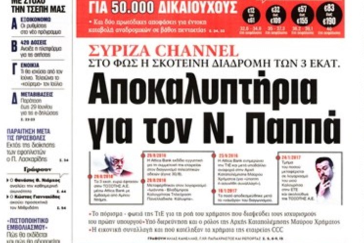 Ωστόσο, παρά το παραπάνω διάγραμμα αλλά και τα όσα αναφέρει η έκθεση της ΤτΕ, η εφημερίδα του συγκροτήματος Μαρινάκη επέμεινε να τοποθετεί στο κάδρο της πορείας των χρημάτων τον πρώην υπουργό της κυβέρνησης ΣΥΡΙΖΑ, με αποτέλεσμα, ο τελευταίος να παρεμβαίνει την Τετάρτη, προαναγγέλλοντας προσφυγή του στη Δικαιοσύνη, λίγες ημέρες πριν καταθέσει το υπόμνημά του στην προανακριτική επιτροπή.