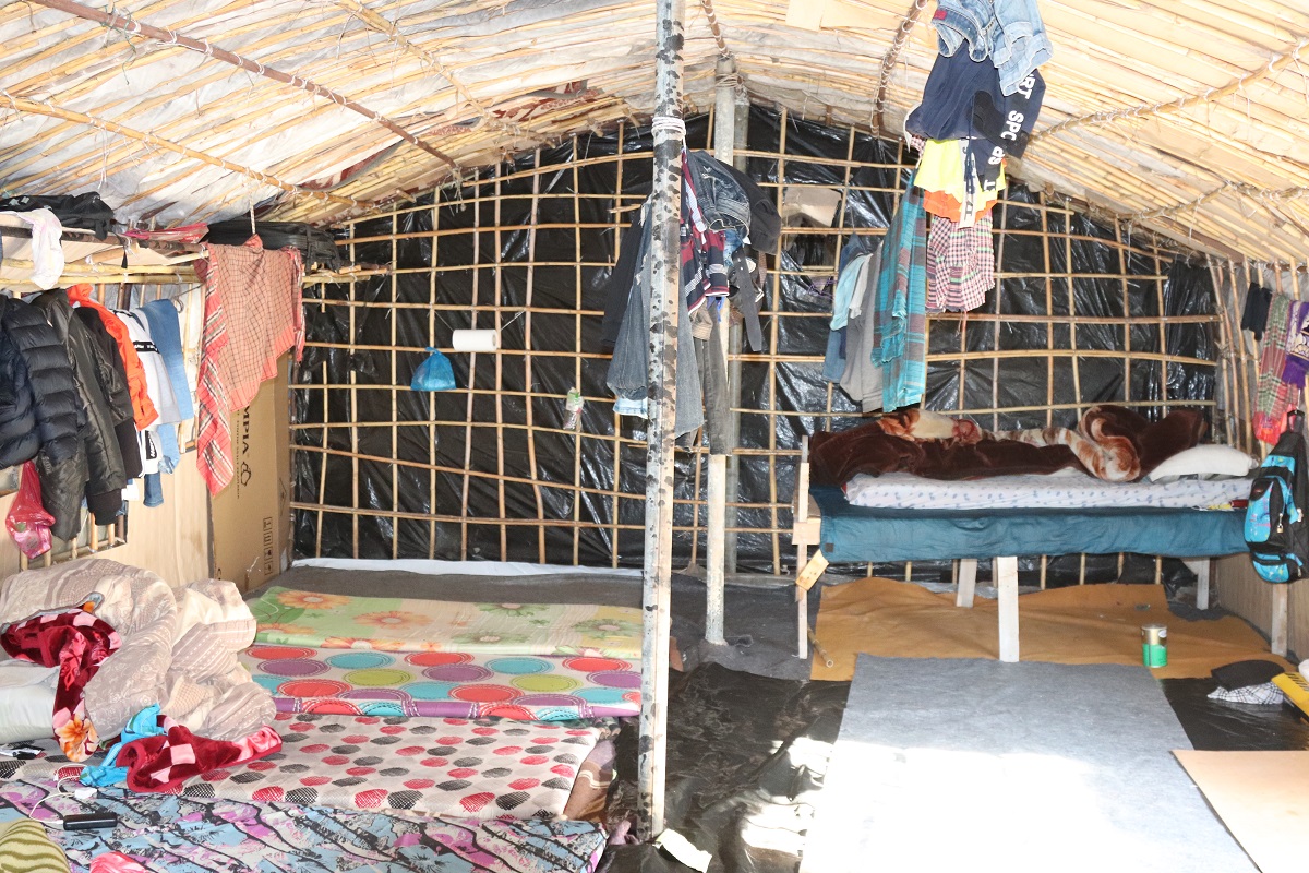 «Οι συνθήκες διαβίωσης δεν παρουσιάζουν καμία βελτίωση. Στον καταυλισμό, τον οποίο επισκεπτόμαστε σταθερά, παραμένουν οι αυτοσχέδιες παράγκες από καλάμια, σίδερα και νάιλον θερμοκηπίου. Λόγω του χειμώνα που έρχεται, οι εργάτες γης έχουν αρχίσει να τοποθετούν επιπλέον στρώσεις νάιλον πάνω από τις παράγκες. Όπως μας ενημερώσαν, αυτή την περίοδο μένουν μαζί 6-8 άτομα ανά παράγκα και πληρώνουν ενοίκιο 30 ευρώ τον μήνα για κάθε παράγκα στον ιδιοκτήτη της έκτασης. Τους επόμενους μήνες και μέχρι το καλοκαίρι, που οι διαμένοντες θα πολλαπλασιαστούν λόγω της παραγωγής φράουλας, ο αριθμός ανά παράγκα κυμαίνεται από 10 έως 20 άτομα, ενώ το ενοίκιο ανεβαίνει στα 40 ευρώ τον μήνα. Στον καταυλισμό δεν υπάρχει δίκτυο ύδρευσης αλλά μόνο μικρές πλαστικές δεξαμενές, οι οποίες είναι τοποθετημένες ανάμεσα στις παράγκες. Παρατηρείται επίσης συγκέντρωση τεράστιων ποσοτήτων απορριμμάτων, τα οποία οι εργάτες γης καίνε ανά περιόδους καθώς δεν υπάρχει καμία πρόβλεψη για τη συλλογή τους και την αποκομιδή τους από τον καταυλισμό. Τέλος, οι τουαλέτες είναι αυτοσχέδιες με αποτέλεσμα τα λύματα να συγκεντρώνονται και να παραμένουν εκεί.