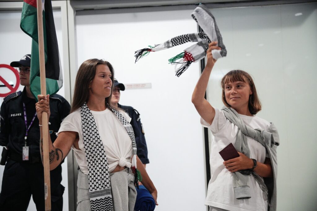 «Θα μπορούσα να μιλάω για πολλή πολλή ώρα για την κακομεταχείριση και τις καταχρήσεις που υφιστάμεθα κατά τη διάρκεια της φυλάκισής μας. Πιστέψτε με, αλλά αυτό δεν είναι η ιστορία. Το Ισραήλ κλιμακώνει τη γενοκτονία και τη μαζική καταστροφή με γενοκτονική πρόθεση, προσπαθώντας να εξαλείψει έναν ολόκληρο πληθυσμό μπροστά στα μάτια μας» δήλωσε αρχικά η Σουηδή ακτιβίστρια, Γκρέτα Τούνμπεργκ.