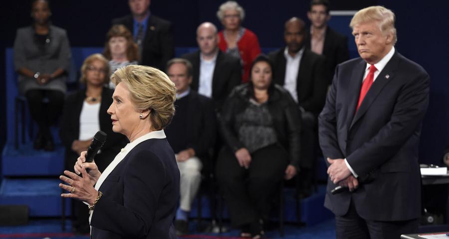 Ο Τραμπ προσέρχεται σε αυτήν την τηλεοπτική αναμέτρηση αποδυναμωμένος και σε αμυντική θέση αφού κατηγορείται από τουλάχιστον 8 γυναίκες ότι της άγγιξε και τις φίλησε παρά την θέλησή τους.