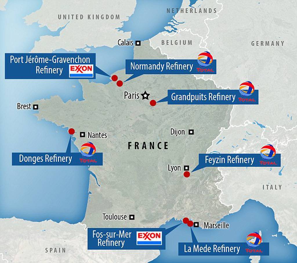 Από την πλευρά τους οι Γαλλικές Αρχές ισχυρίζονται πως «δεν υπάρχει κρίση καυσίμων στη χώρα», ωστόσο, ταυτόχρονα παραδέχονται πως ήδη η κυβέρνηση έχει αρχίσει να χρησιμοποιεί καύσιμα από τα αποθέματα που υπάρχουν πάντα για περιπτώσεις εκτάκτου ανάγκης και κυρίως για στρατιωτικούς σκοπούς.