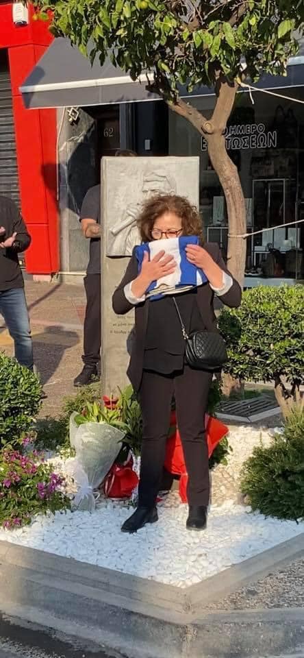 Στο σημείο βρέθηκε και η μητέρα του Π. Φύσσα, Μάγδα η οποία φίλησε τη σημαία.