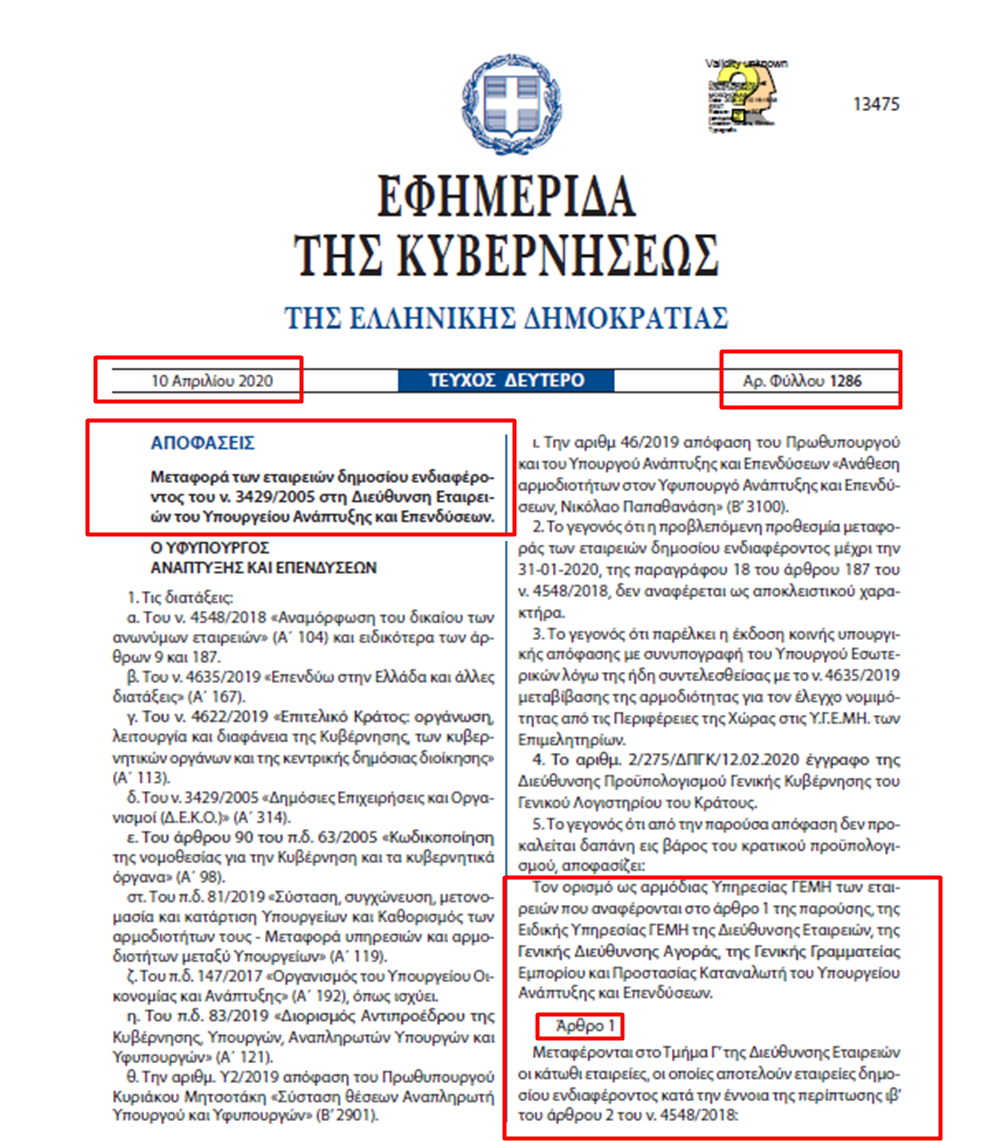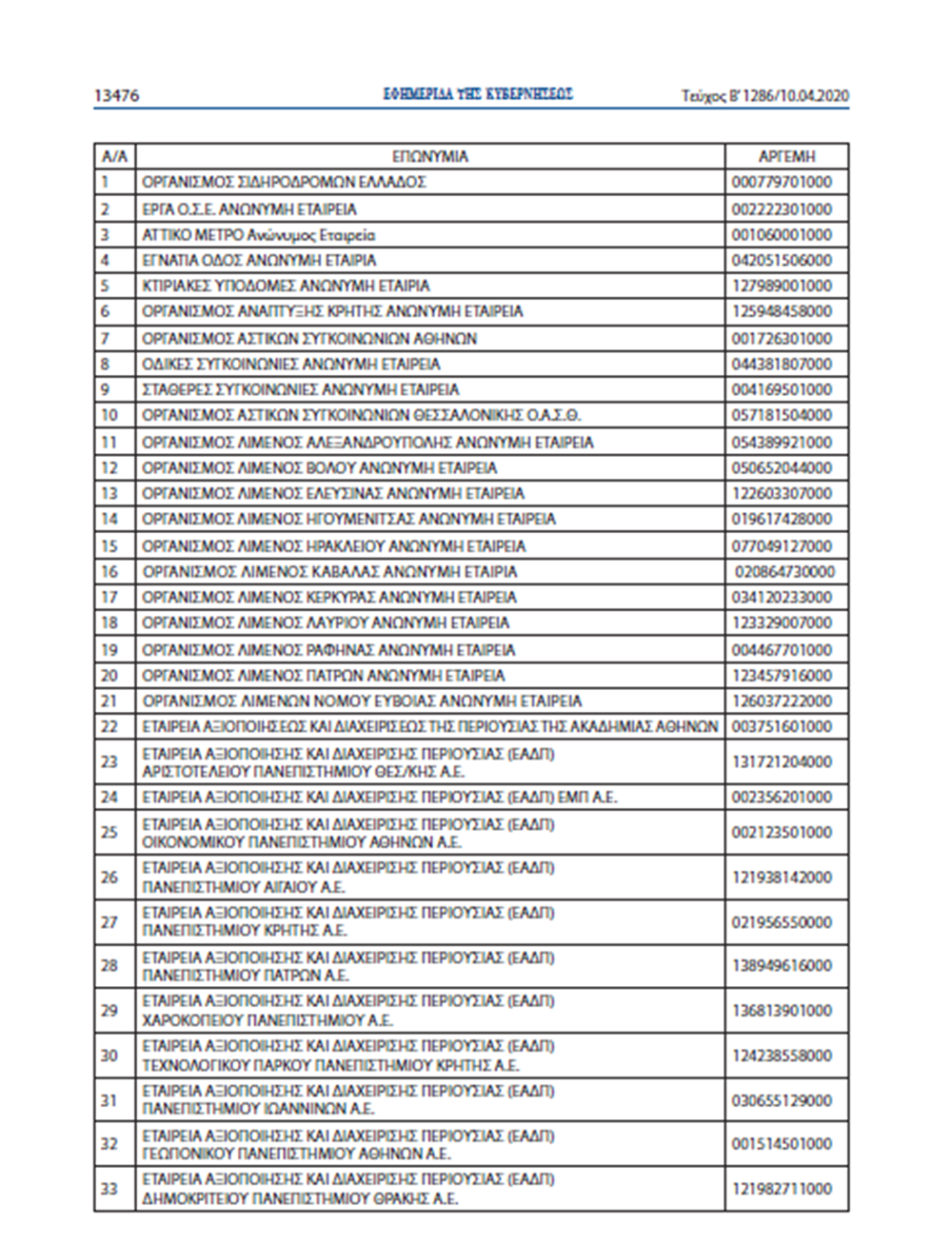 Σημειώνεται επίσης πως η μεταφορά των παραπάνω δεν είναι η μόνη, καθώς σύμφωνα με την ίδια απόφαση, την ίδια διαδρομή ακολουθεί πλήθος επιχειρήσεων και φορέων του δημόσιου και του ευρύτερου δημόσιου τομέα, όπως η Ελληνική Διαχειριστική Εταιρεία Υδρογονανθράκων Α.Ε., ο Οργανισμός Αστικών Συγκοινωνιών Αθηνών και Θεσσαλονίκης, οι Ελληνικές Αλυκές Α.Ε., η ΕΑΒ (Ελληνική Αμυντική Βιομηχανία), τα Ελληνικά Αμυντικά Συστήματα, η Ηλεκτρομαγνητική Κύμης (τελεί υπό ειδική εκκαθάριση), και εταιρείες διαχείρισης περιουσίας Πανεπιστημιακών Ιδρυμάτων, που χαρακτηρίζονται ως εταιρείες «δημοσίου ενδιαφέροντος κατά την έννοια της περίπτωσης ιβ του άρθρου 2 του ν. 4548/2018».