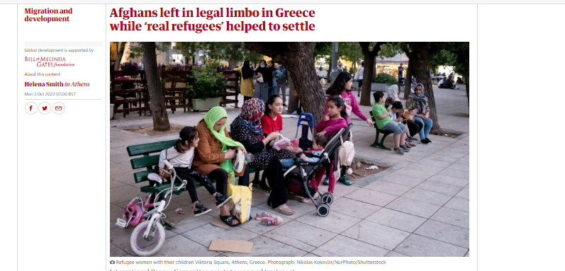 «Αφγανοί σε νομικό κενό, ενώ βοηθούνται οι “πραγματικοί πρόσφυγες”» γράφει το δημοσίευμα. «Η ελληνική κυβέρνηση δεν κάνει τίποτα. Απλώς λέει συνέχεια «περίμενε, περίμενε, περίμενε». Και αυτό κάνουμε όλη μέρα, κάθε μέρα. Περιμένουμε την ελευθερία»: η πραγματικότητα για τους Αφγανούς, κι όχι μόνο.