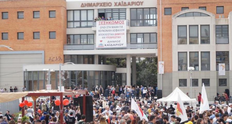 Τους χιλιάδες οδοιπόρους υποδέχθηκαν ο δήμαρχος Χαϊδαρίου Μιχάλης Σελέκος, σωματεία, φορείς και χιλιάδες κόσμου. Έξω από το Δημαρχείο πραγματοποιήθηκε εκδήλωση προς τιμή των διαδηλωτών, οι οποίοι θα καταλήξουν στην Πλατεία Συντάγματος, στις 18.00 το απόγευμα, όπου θα συμμετάσχουν στις εκδηλώσεις που έχουν προγραμματιστεί από ομοσπονδίες, συνδικάτα επιτροπές ανέργων και δεκάδες φορείς