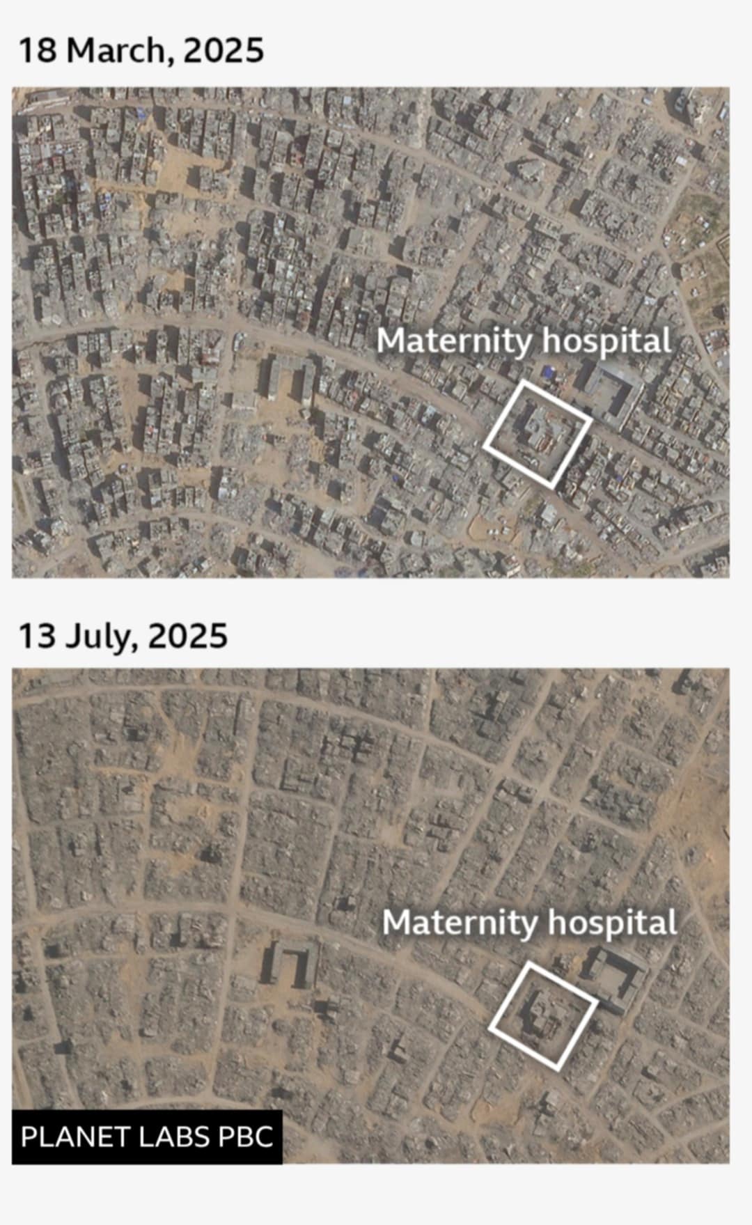 Μεταξύ των εναπομεινάντων κτιρίων στην άλλωτε γεμάτη ζωή περιοχή Τελ Αλ Σουλτάν είναι το μοναδικό μαιευτήριο της πόλης, αναδεικνύοντας το τεράστιο μέγεθος της καταστροφής. Μέχρι τις 13 Ιουλίου, οι κατεδαφίσεις είχαν φτάσει σε σημείο που ακόμη και τα κελύφη των κατεστραμμένων κτιρίων είχαν απομακρυνθεί, απογυμνώνοντας πλήρως ολόκληρα οικοδομικά τετράγωνα.