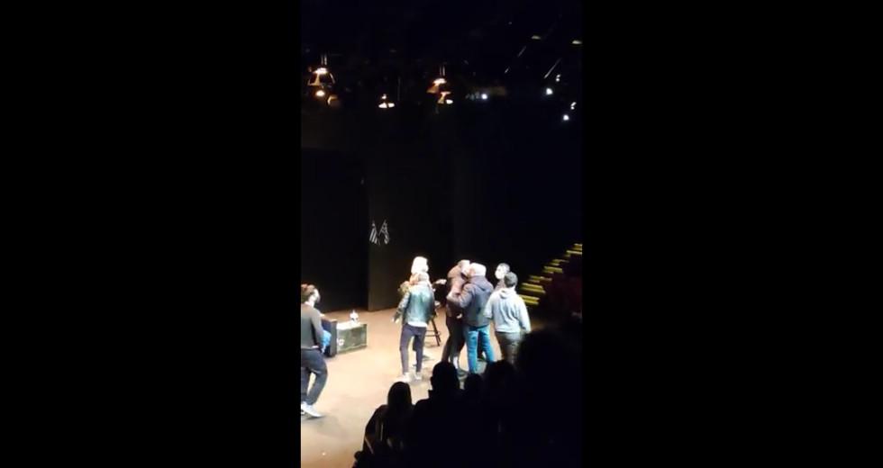 Στην ανακοίνωση αναφέρει: «Η προκλητική διακοπή της σατιρικής παράστασης του Χριστόφορου Ζαραλίκου από αυτόκλητη (;) ομάδα “υπερασπιστών Μαρινάκη” με επικεφαλής τηλεπερσόνα, δείχνει ότι πάντα θα υπάρχει ένας πρόχειρος Παναγιώταρος να κάνει τη βρώμικη δουλειά. Ευχόμαστε πολύ σύντομα να διαπιστώσουν κι αυτοί οι συνεχιστές της Χ.Α. πόσο αναλώσιμοι είναι».
