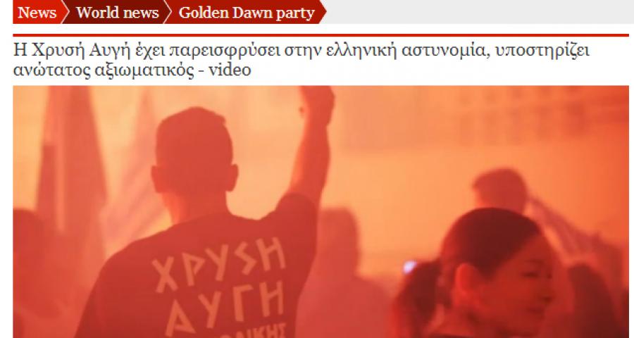 Νέες αποκαλύψεις για τις σχέσεις της Χρυσής Αυγής και της Ελληνικής Αστυνομίας φέρνει στο φως η εφημερίδα Guardian σε συνεργασία με την INFOWAR Productions του Αρη Χατζηστεφάνου, την εταιρεία παραγωγής των ντοκιμαντέρ Debtocracy και Catastroika.