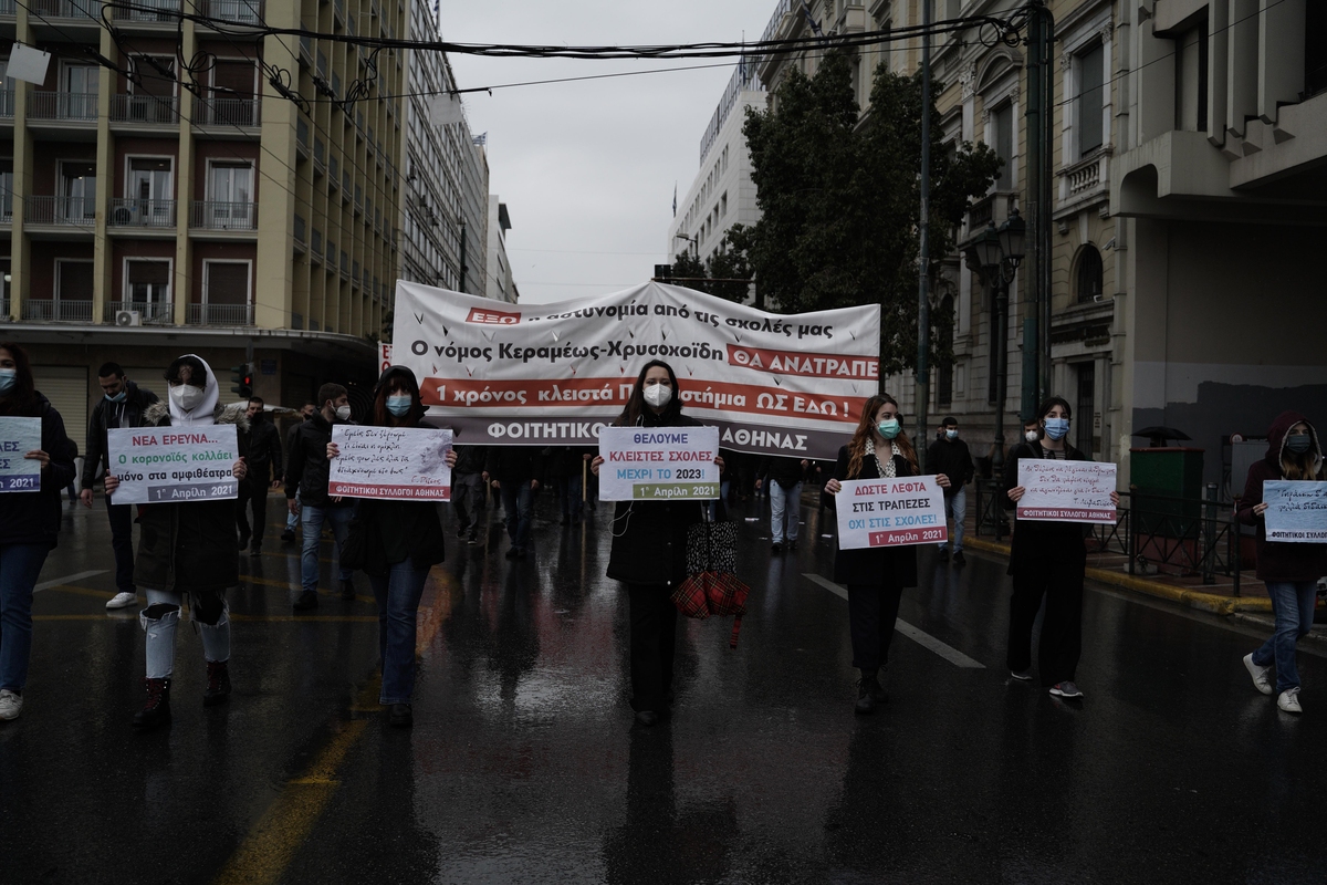Μαζικά βρέθηκαν στους δρόμους φοιτητές και φοιτήτριες με αίτημα το άνοιγμα των σχολών τους με όλα τα μέσα προστασίας.