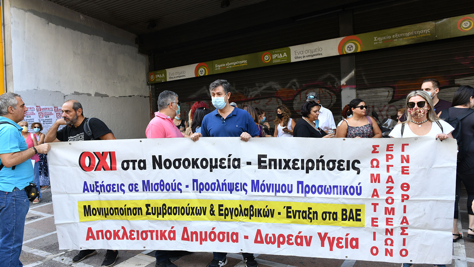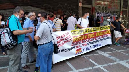 «Κάτω τα χέρια από τα ΒΑΕ – Μείωση των ορίων Συνταξιοδότησης – Επέκταση του θεσμού στους υγειονομικούς», ανέγραφε μεταξύ άλλων το πανό του ΠΑΜΕ Υγείας – Πρόνοιας, ζητώντας την άμεση ένταξη των εργαζομένων στην δημόσια υγεία, στο εργασιακό καθεστώς των ΒΑΕ και την διασφάλιση των ειδικών όρων που ισχύουν ήδη για τους ενταγμένους κλάδους.
