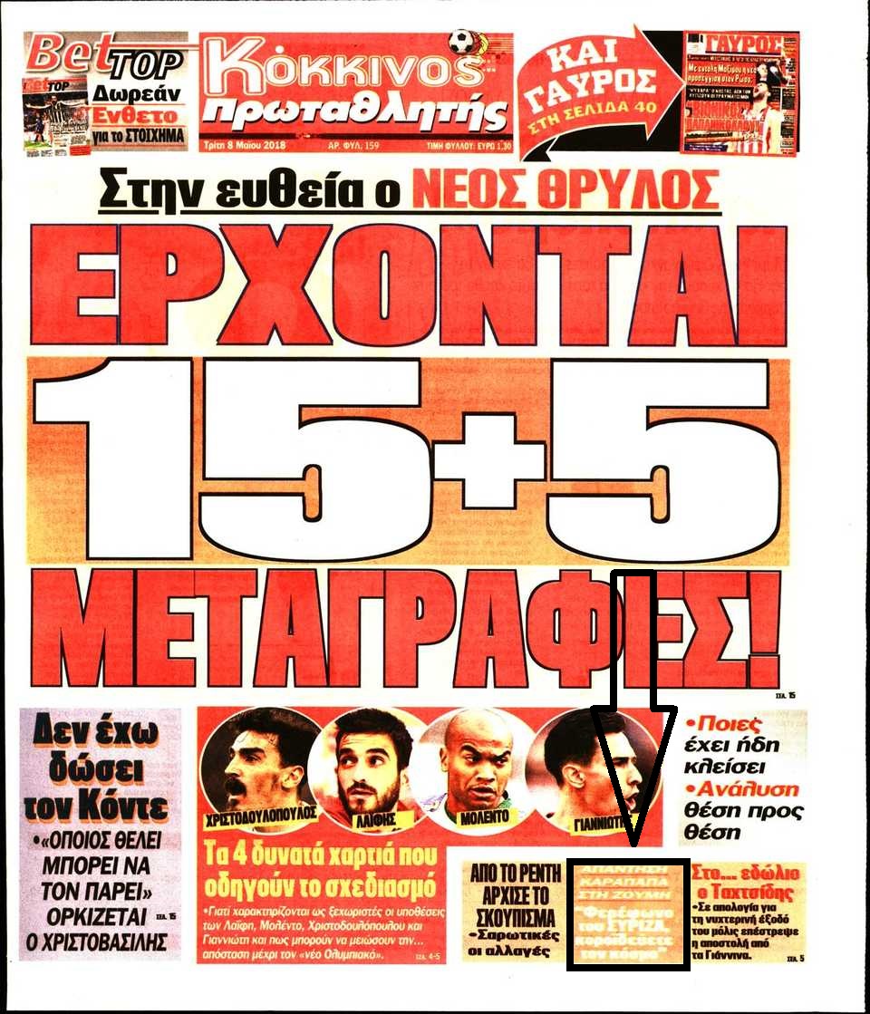 Το πρωτοσέλιδο της εφημερίδας «Κόκκινος Πρωταθλητής» της 8ης Μαΐου