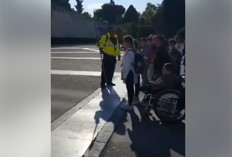 Όπως μπορεί να δει κανείς στο βίντεο, ο δάσκαλος έχει παρατάξει τους μαθητές σαν στρατιωτάκια απέναντι από τους Εύζωνες, όπου παρακολουθούν την αλλαγή φρουράς.